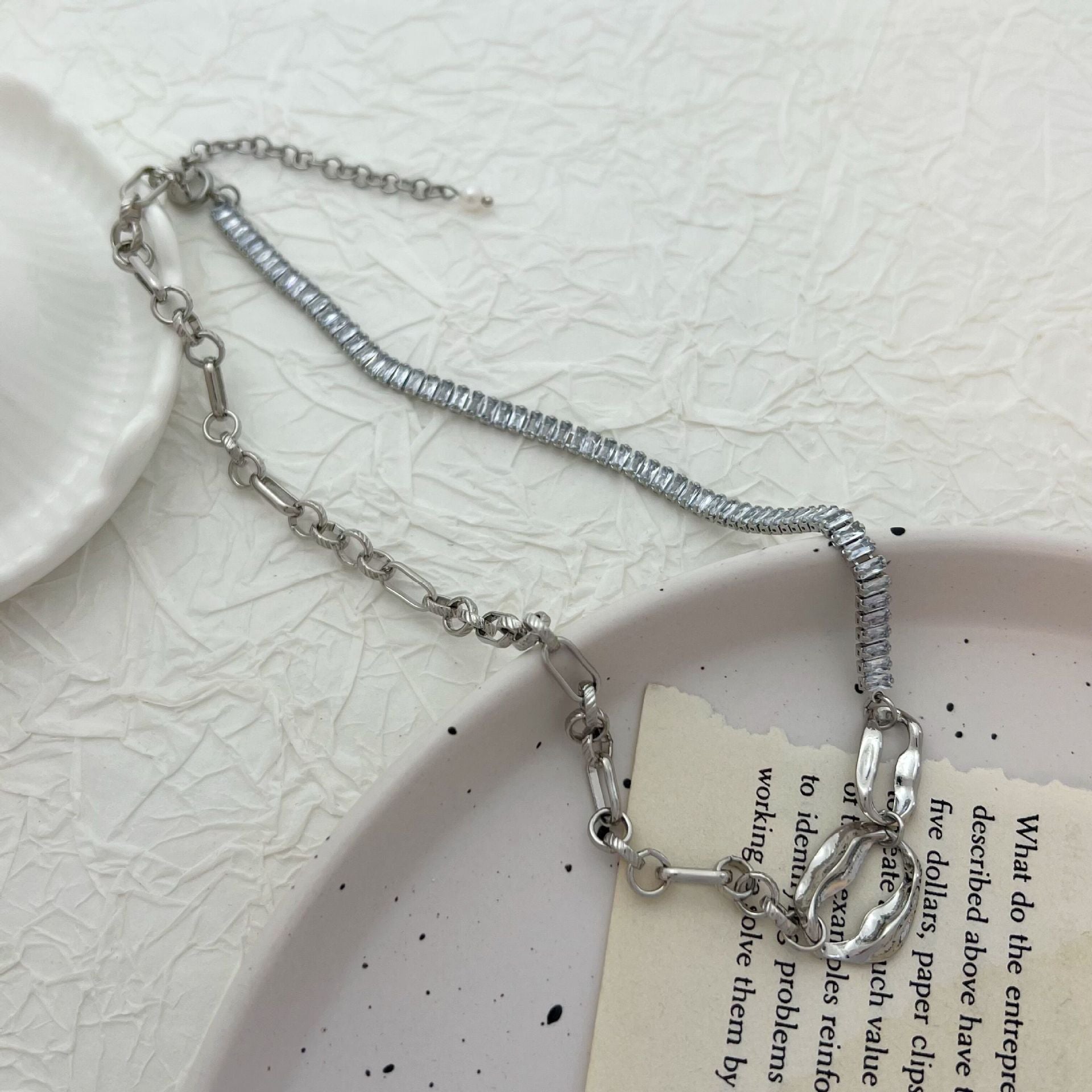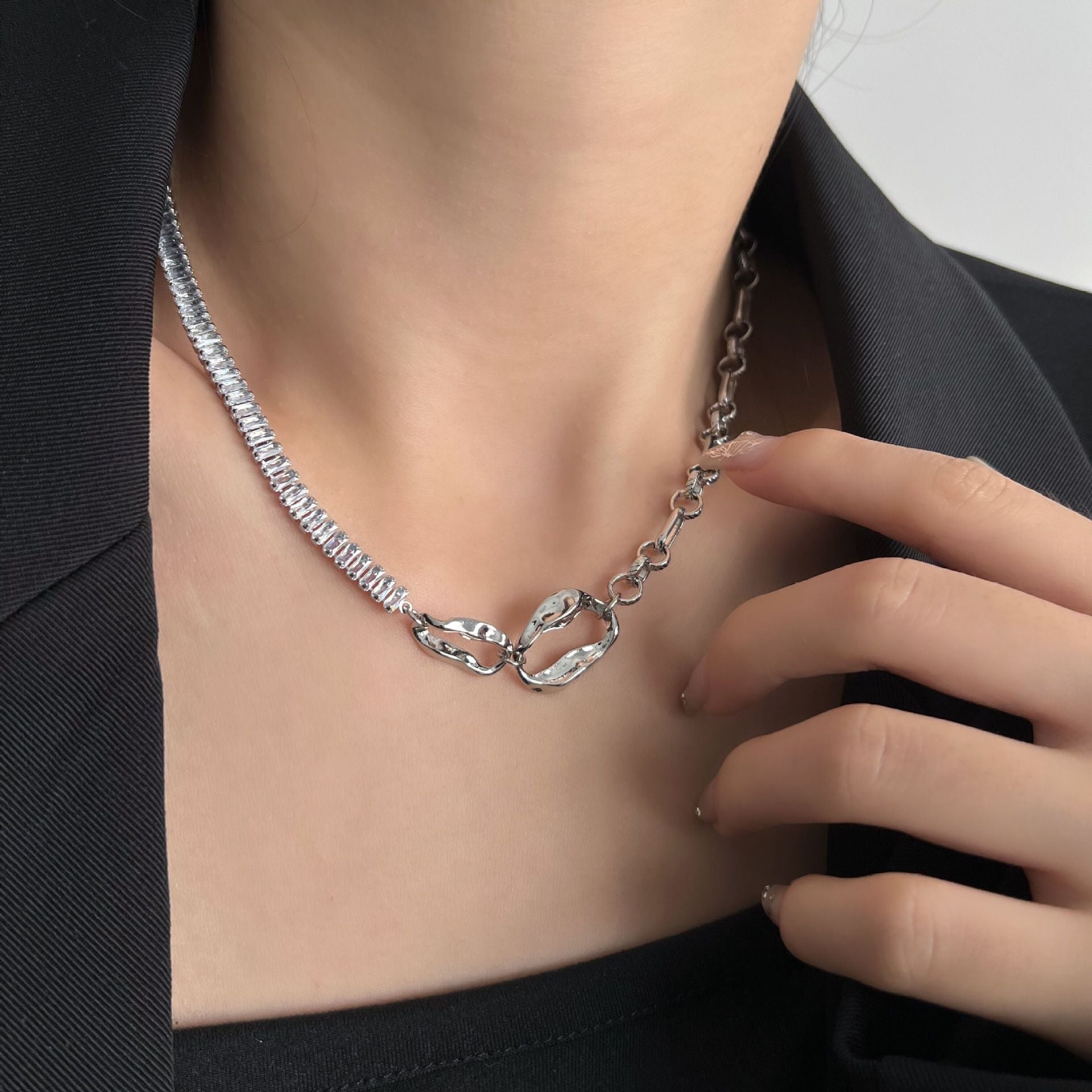Irregular Ring Clasp Zircon Joint Necklace - High-End Minimalist Niche & Versatile Collarbone Chain (TX02)